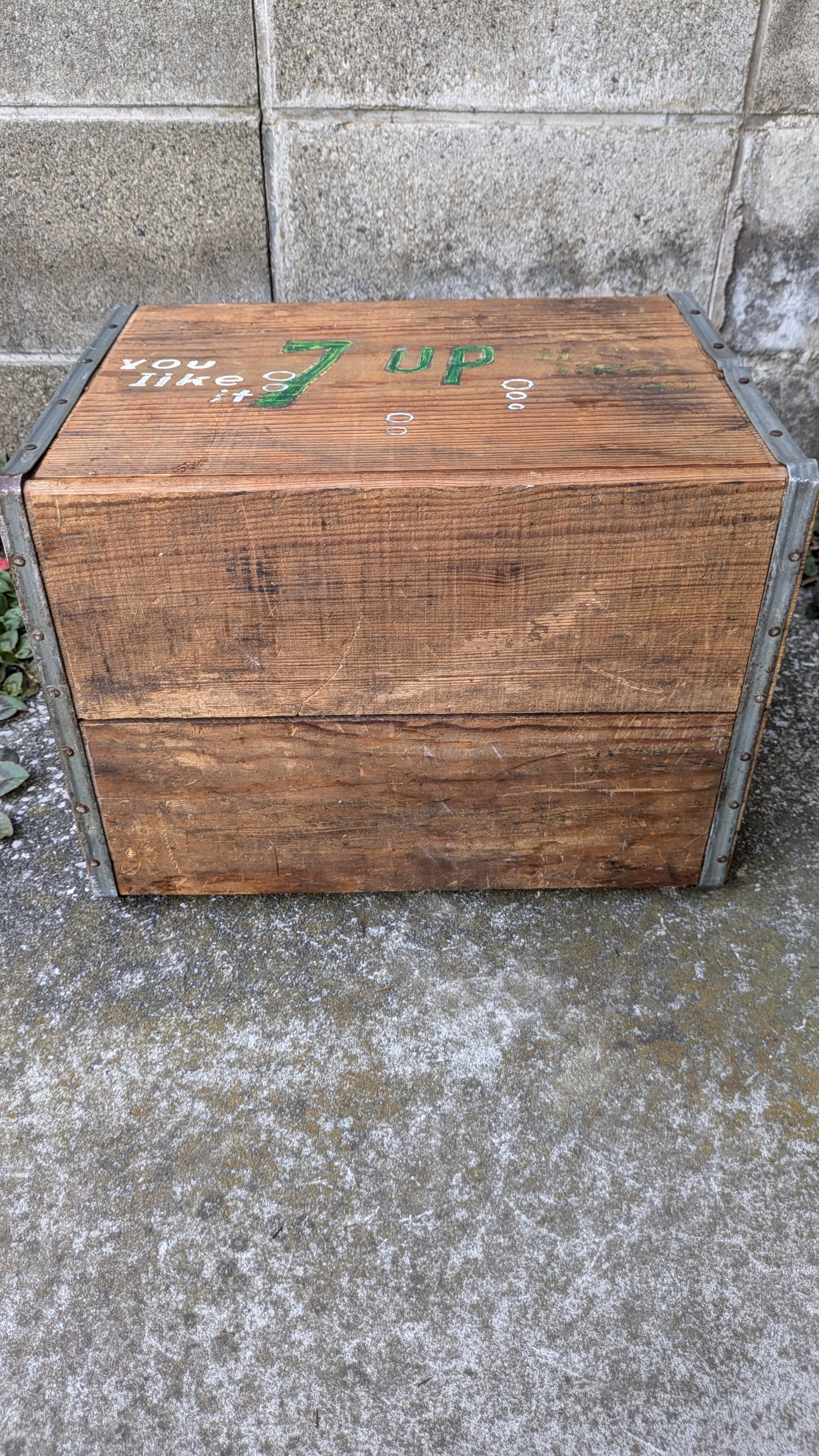 アメリカにて買い付けた人気の高いビンテージ7UPのウッドボックスです。