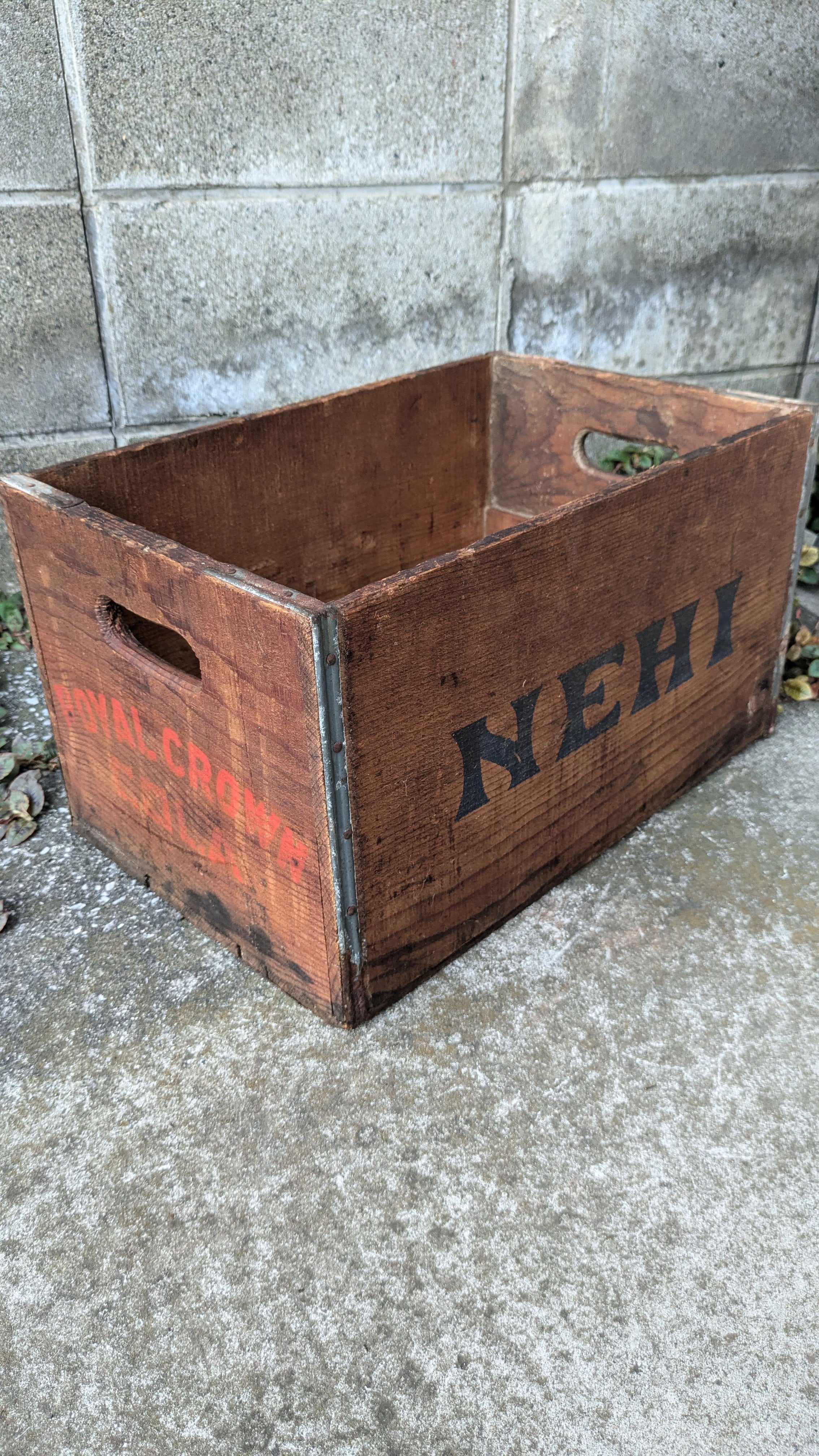 アメリカにて買い付けた珍しいビンテージRoyalCrownColaのウッドボックスです。