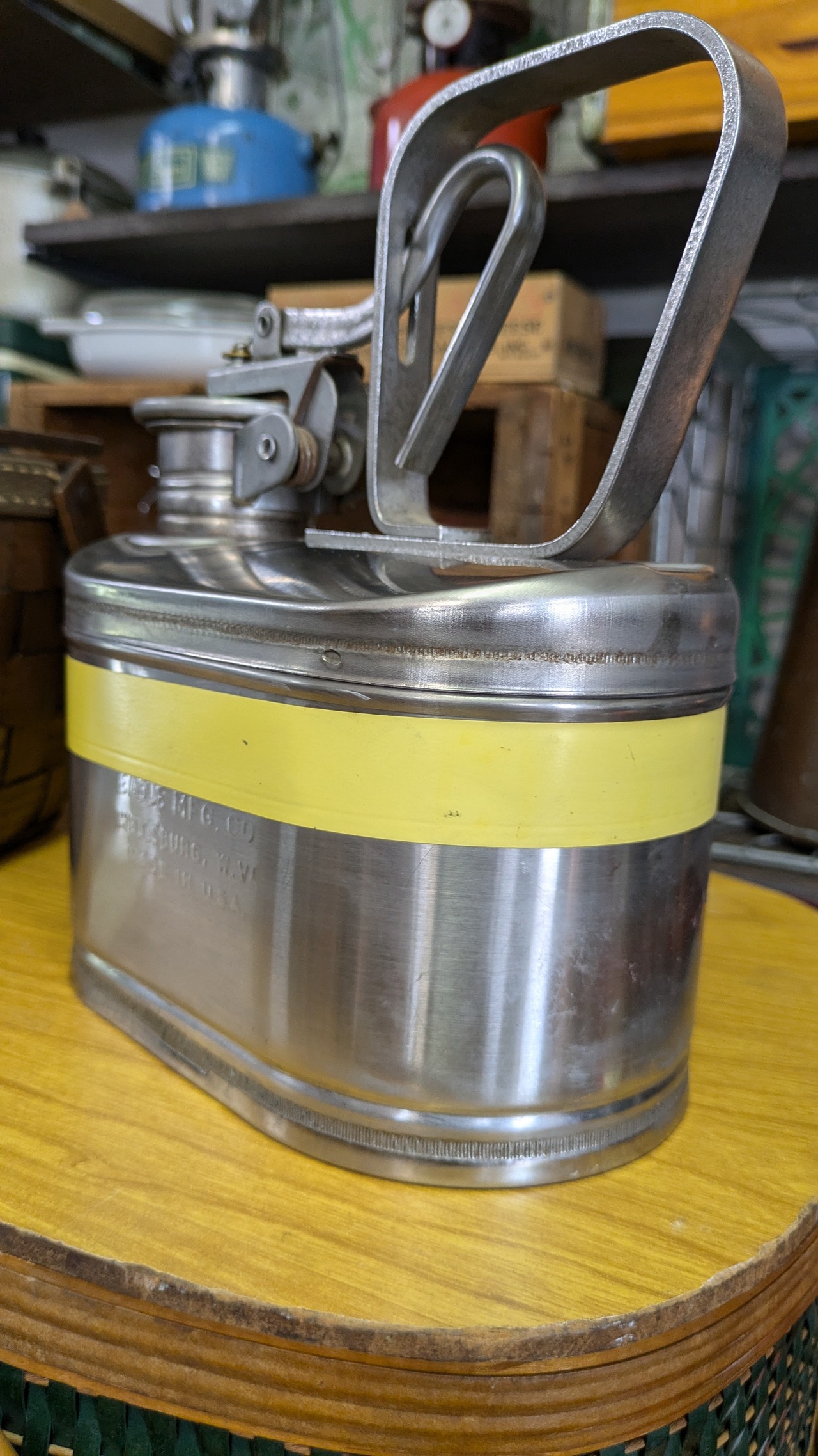 Vintage EAGLE MFG Co Metal GasolinCan SafetyCan 1/4gallon OilCan ビンテージ セーフティー缶 ガソリン缶 携行缶 1リットル アンティーク キャンプギア ホワイトガソリン入れ 灯油缶