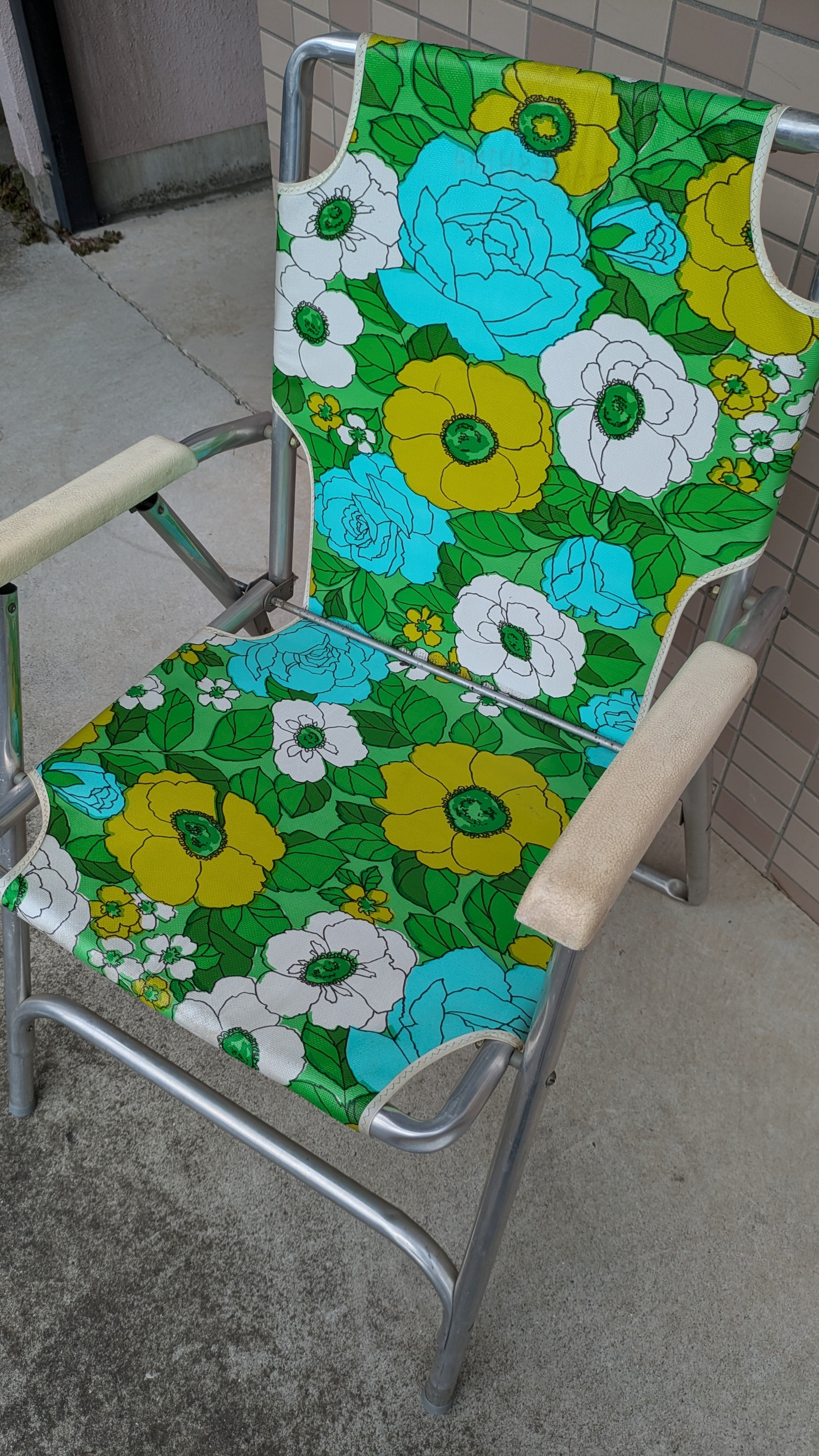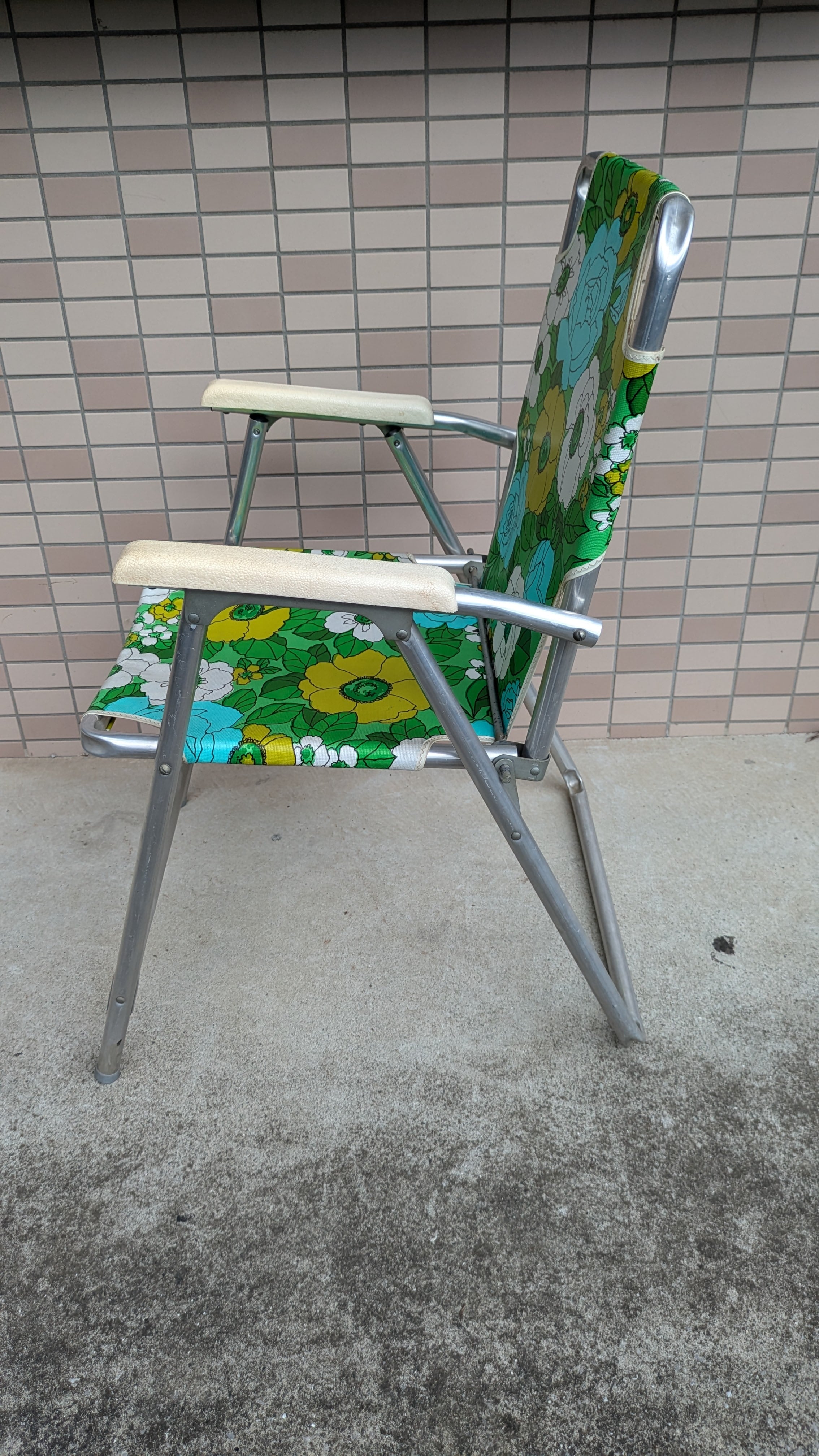 Vintage FlowerPattern LAWN CHAIR Aluminium Folding Camping Chair ビンテージ 花柄 ローンチェア フォールディングチェア キャンプチェア アンティーク アメリカ製 折り畳み椅子 ビンテージキャンプギア