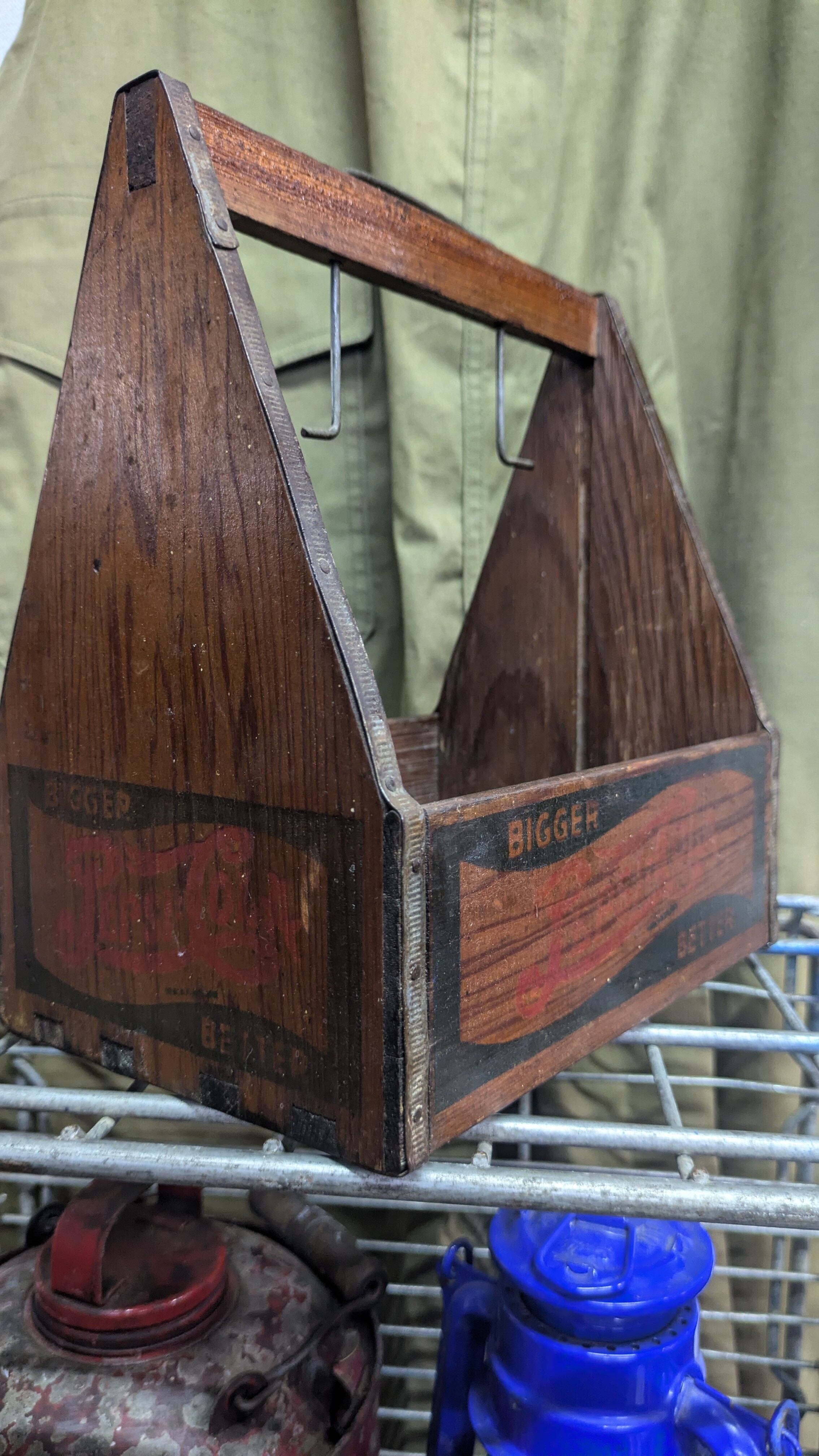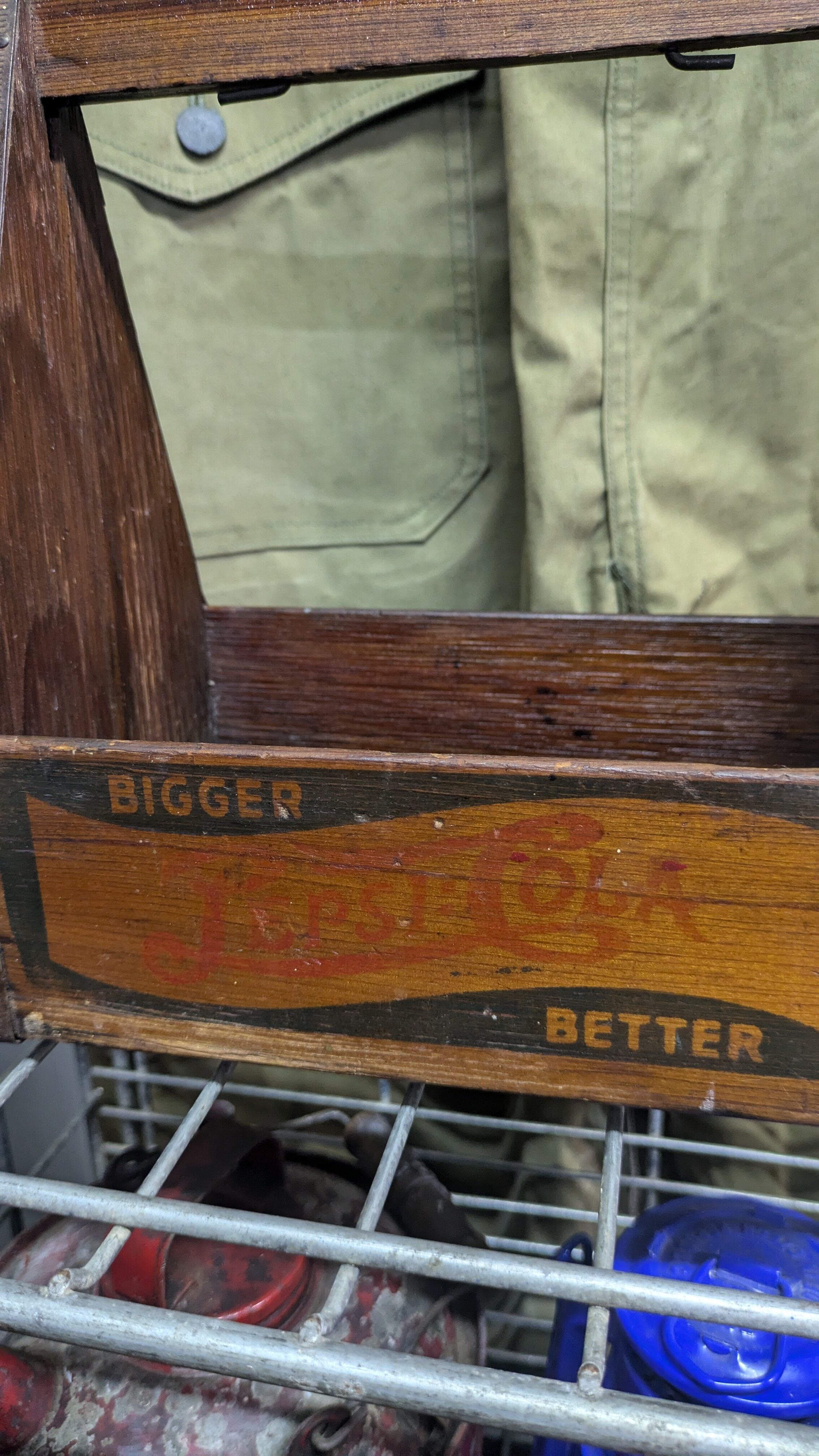 Vintage PEPSI-COLA Wood BottleHolder WoodBasket Case ビンテージ ペプシ コーラ ウッドボトルホルダー 木製 アンティーク スパイスケース バスケット キャンプギア USA ヴィンテージキャンプ