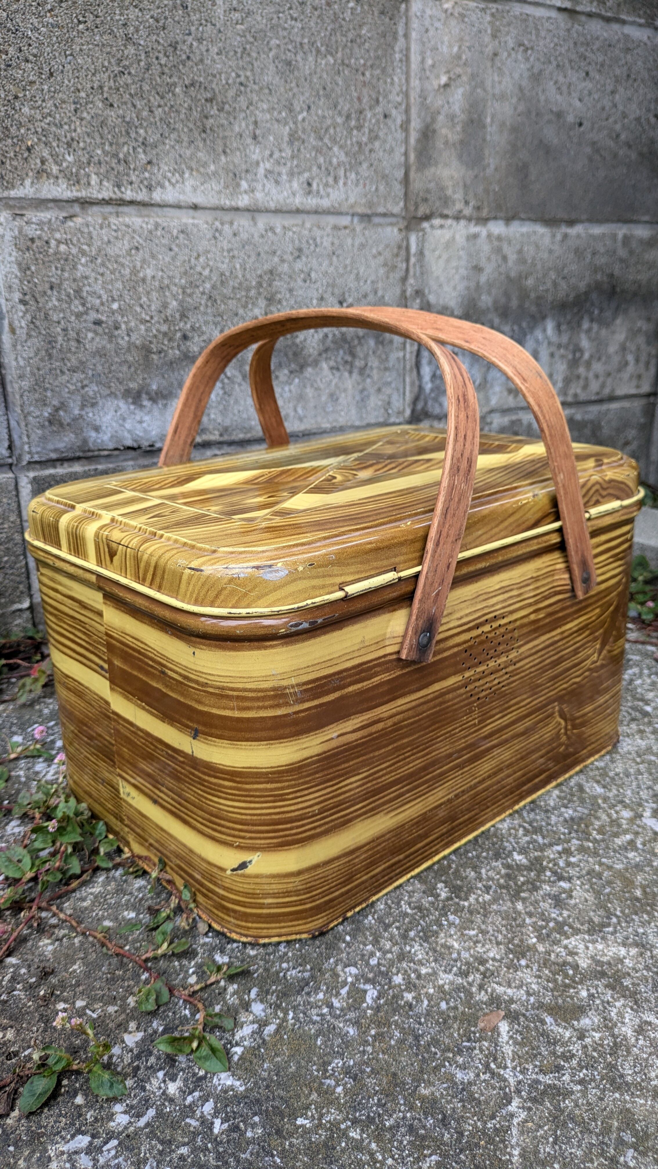 Vintage TinCan PicnicBasket CAN ビンテージ 缶バスケット ピクニックバスケット キャンプギア バスケット USA ヴィンテージキャンプ