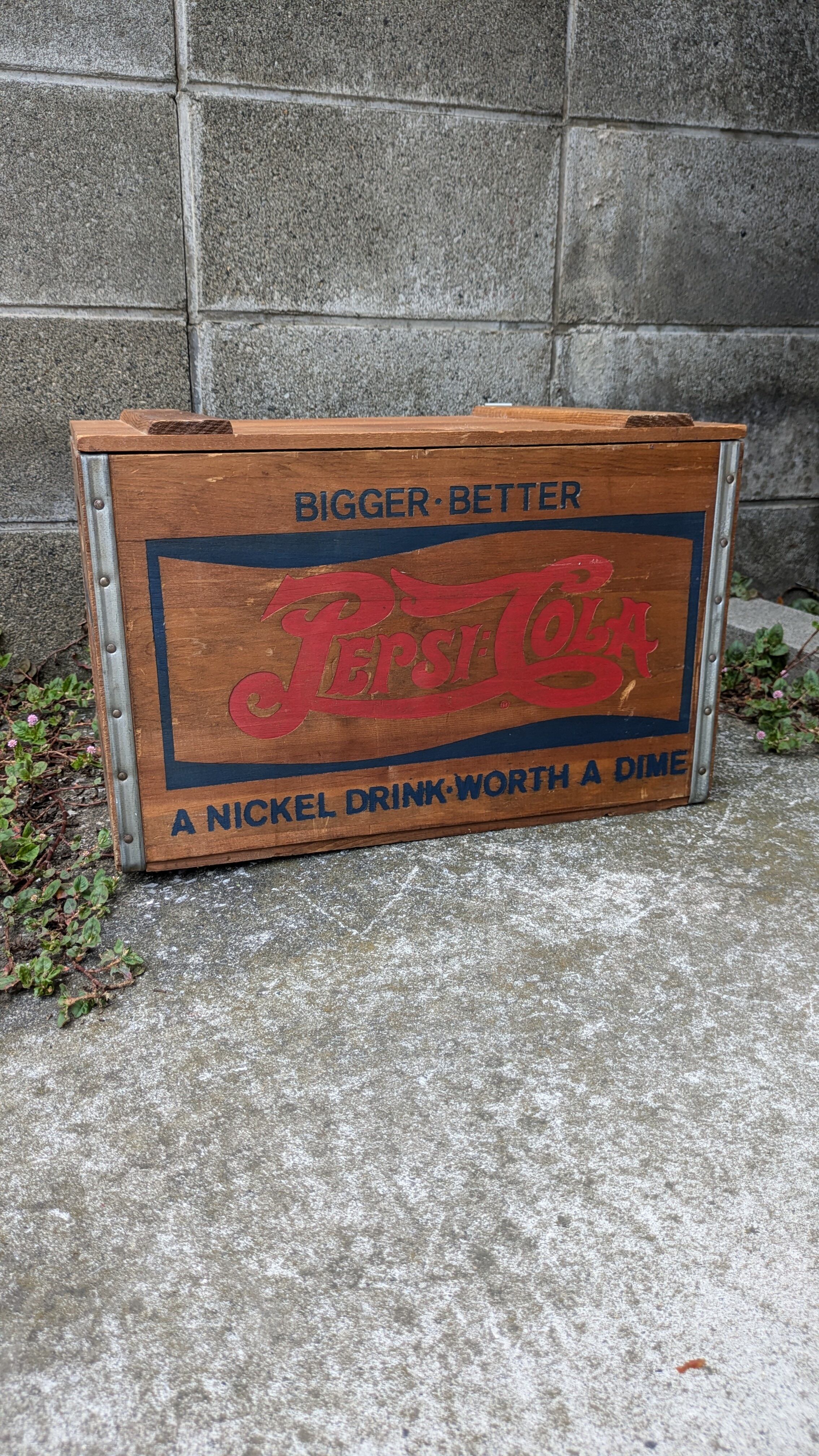 MINT!! Vintage PEPSI-Cola Crate WoodBox WoodCrate ビンテージ ペプシ ウッドボックス 木製 木箱 収納ボックス ギアボックス キャンプギア クレート アンティーク ヴィンテージボックス 天板付き USA 栓抜き付