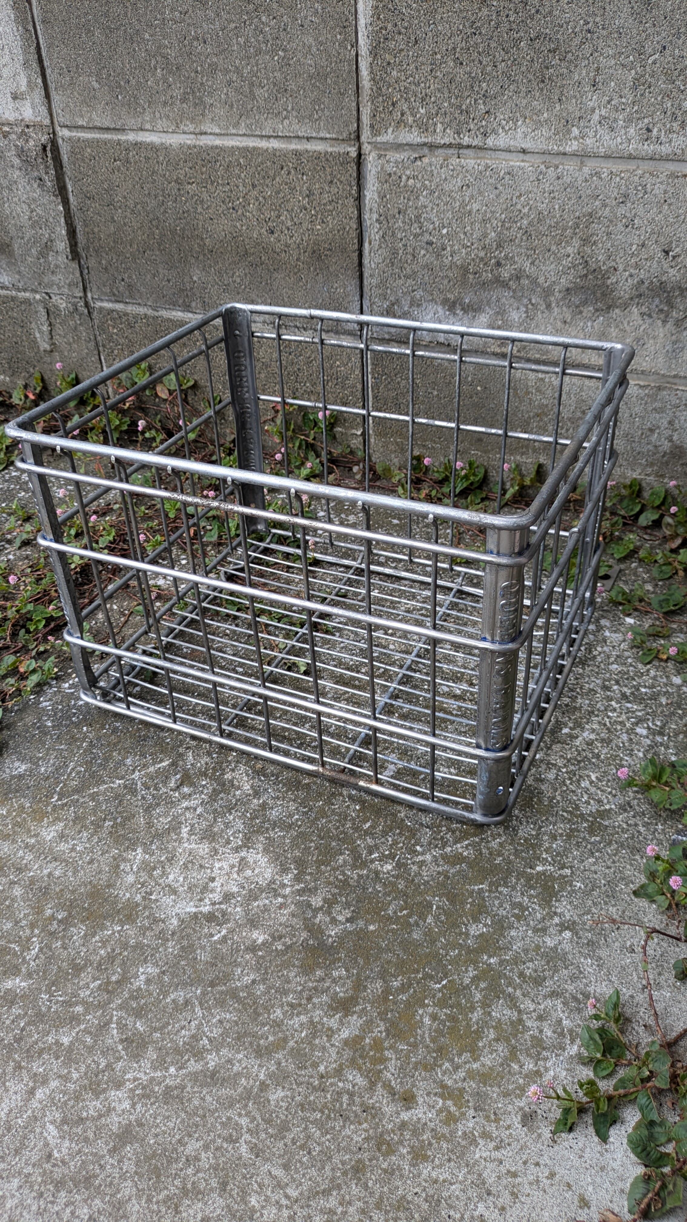 70's Vintage QUEENS FARMS WireCrate MilkCrate MetalBox Basket ビンテージ ワイヤークレート ボックス 収納ボックス ギアボックス キャンプギア クレート アンティーク 薪入れ 希少サイズ