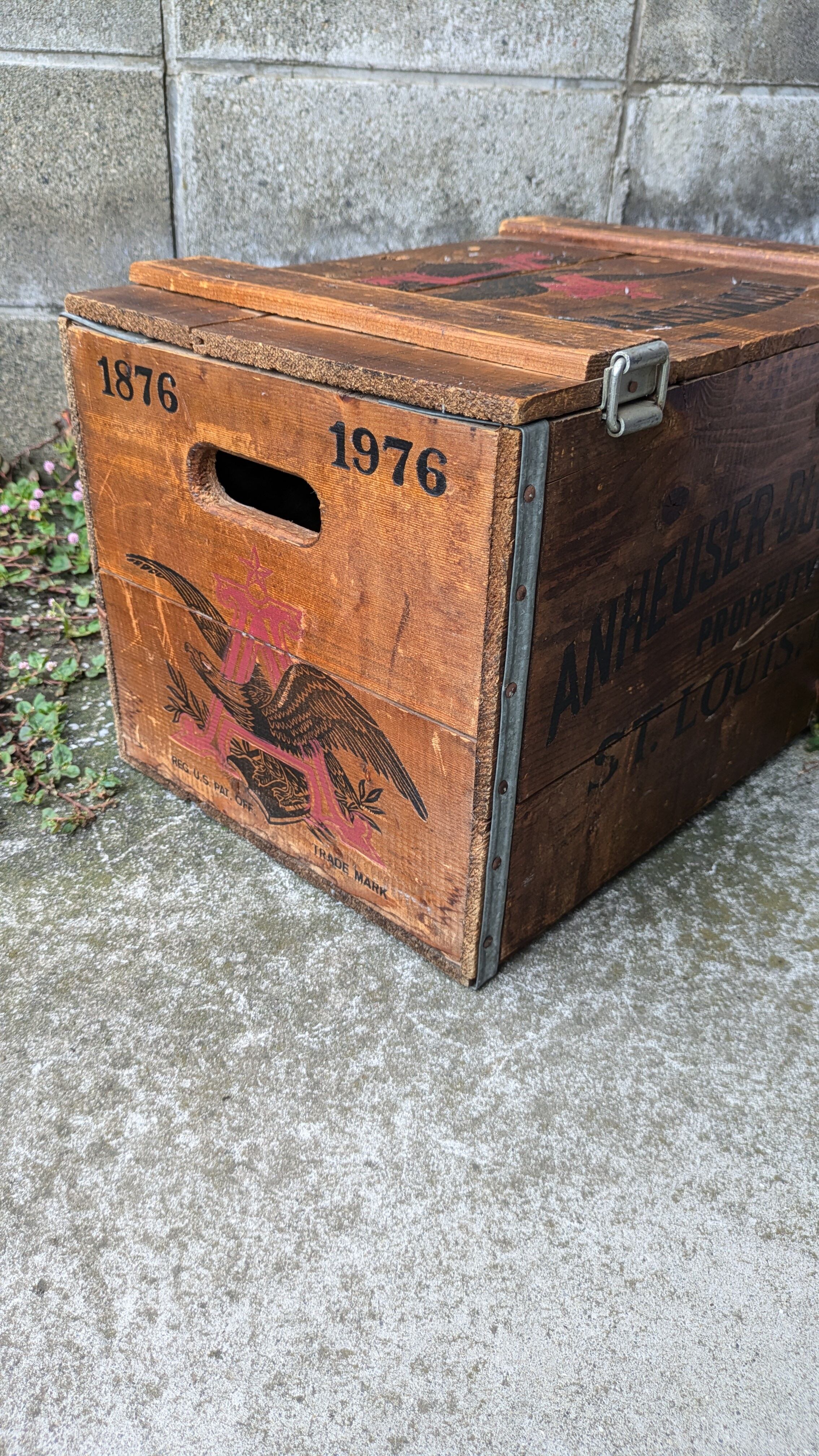 Vintage Budweiser Crate WoodBox ANHEUSERBUSCHINC ビンテージ バドワイザー ウッドボックス 木製 木箱 収納ボックス ギアボックス キャンプギア クレート アンティーク ヴィンテージボックス 天板付き USA