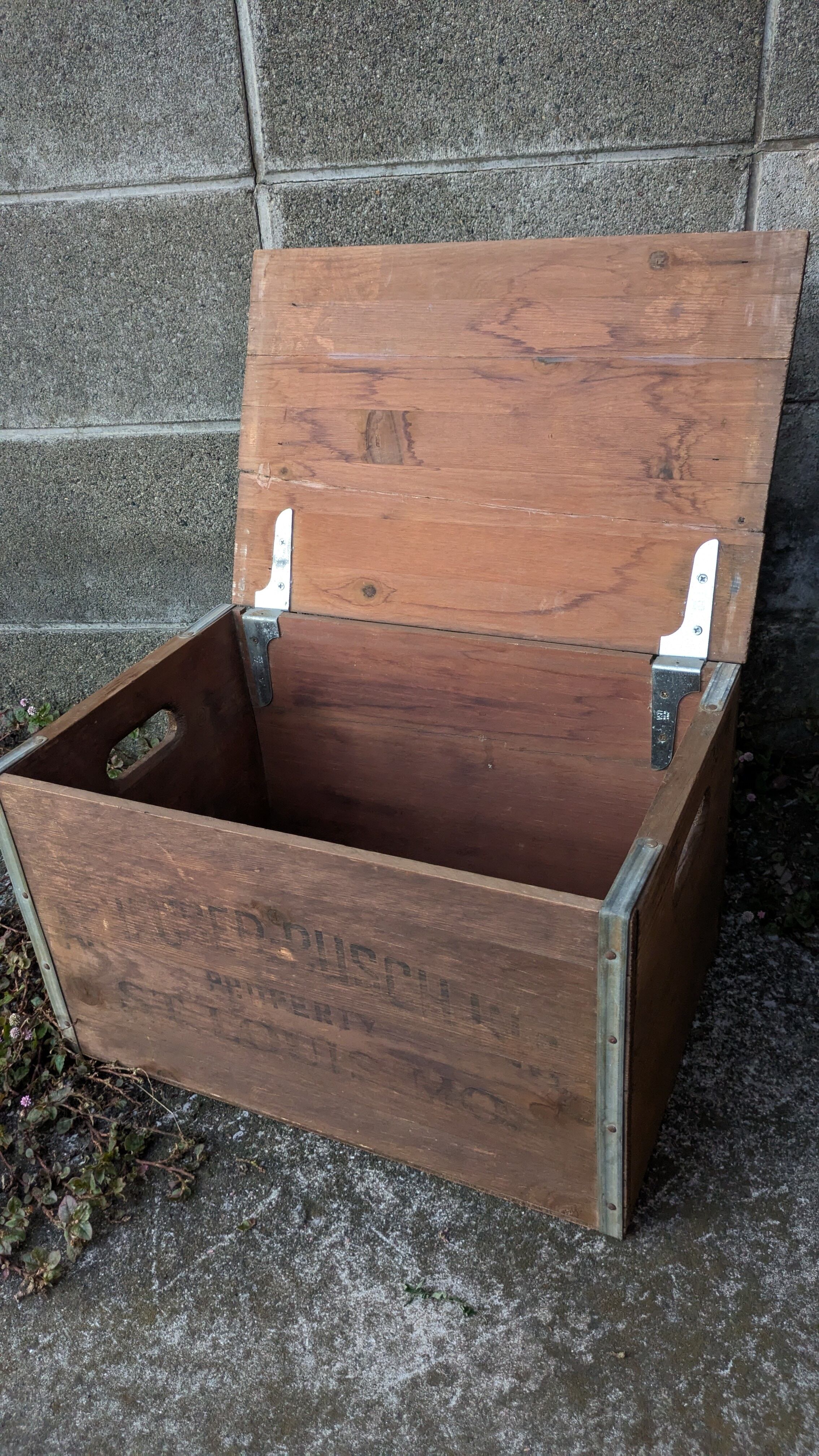 Vintage St.Louis.LagerBeer Crate WoodBox ANHEUSER BUSCH INC ビンテージ ラガービール ウッドボックス 木製 木箱 収納ボックス ギアボックス キャンプギア クレート アンティーク ヴィンテージボックス 天板付き USA