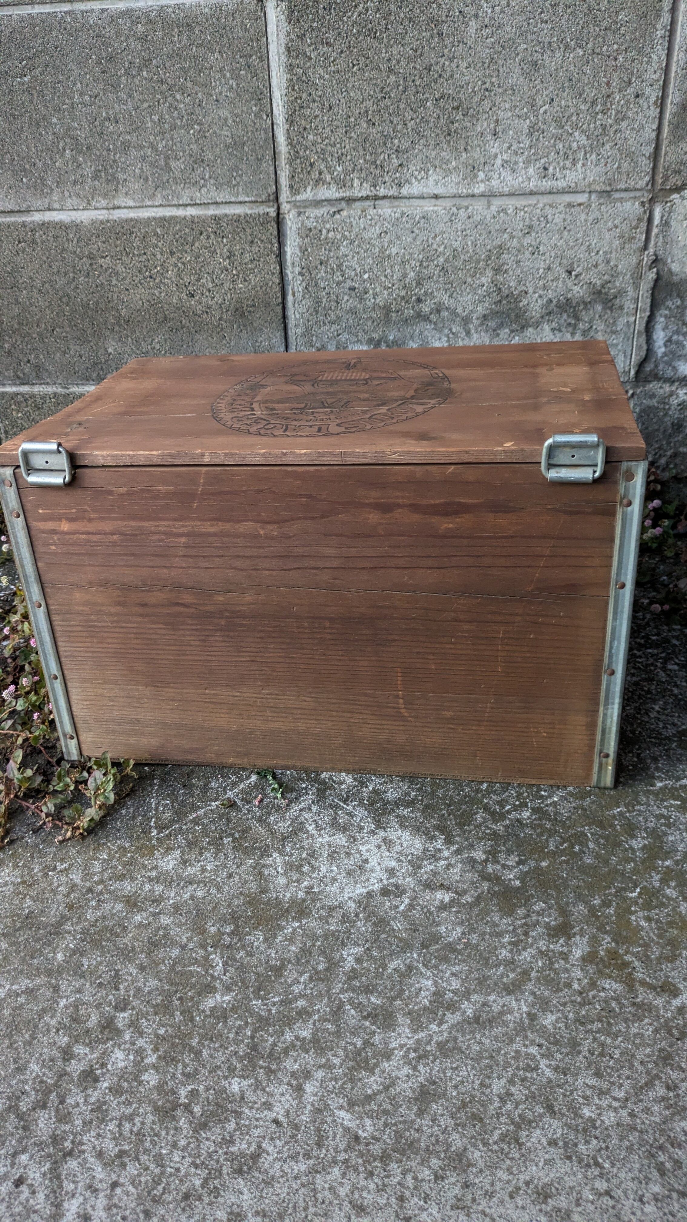 アメリカにて買い付けた人気の高い蓋つきのビンテージウッドボックスです。