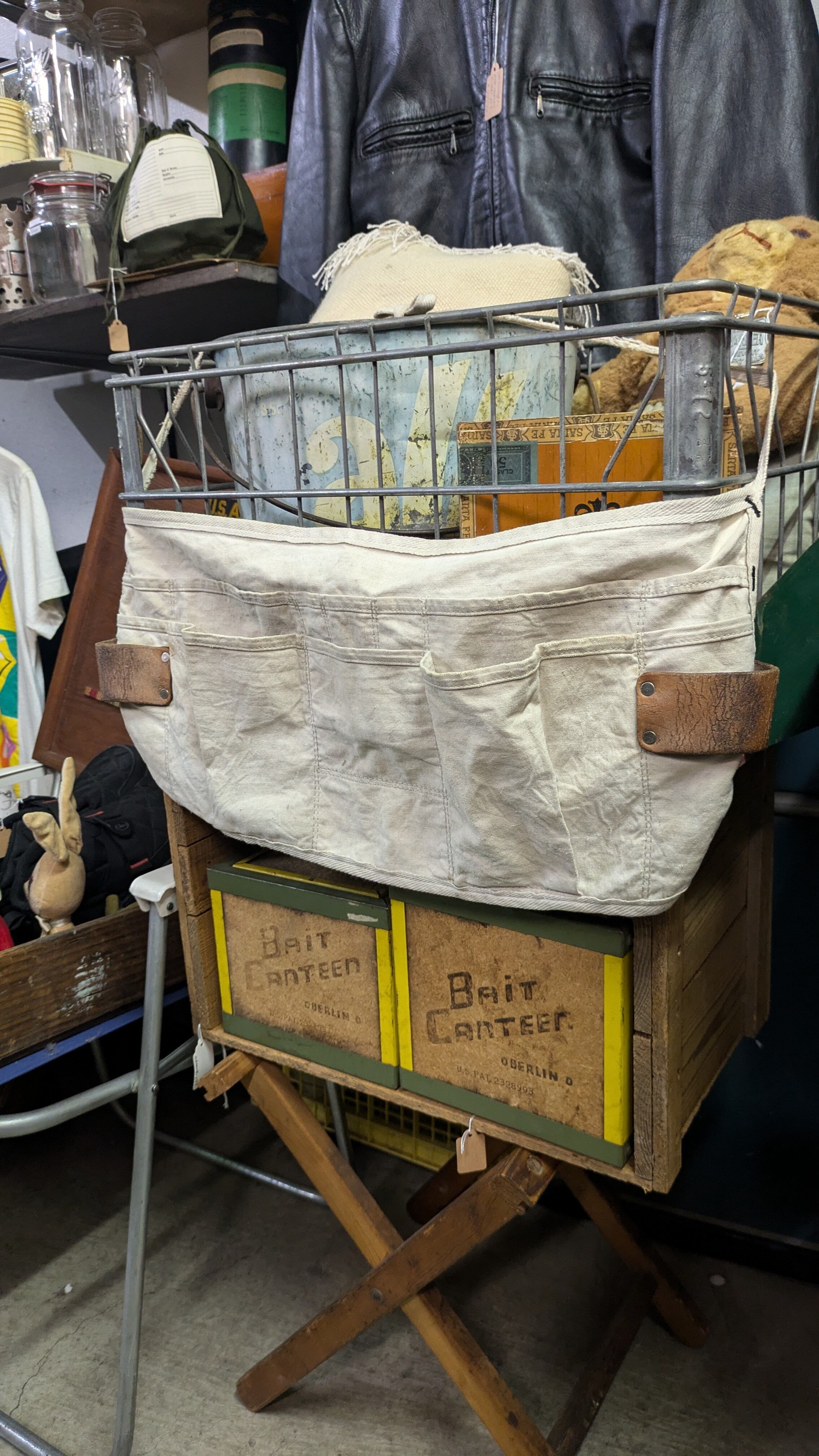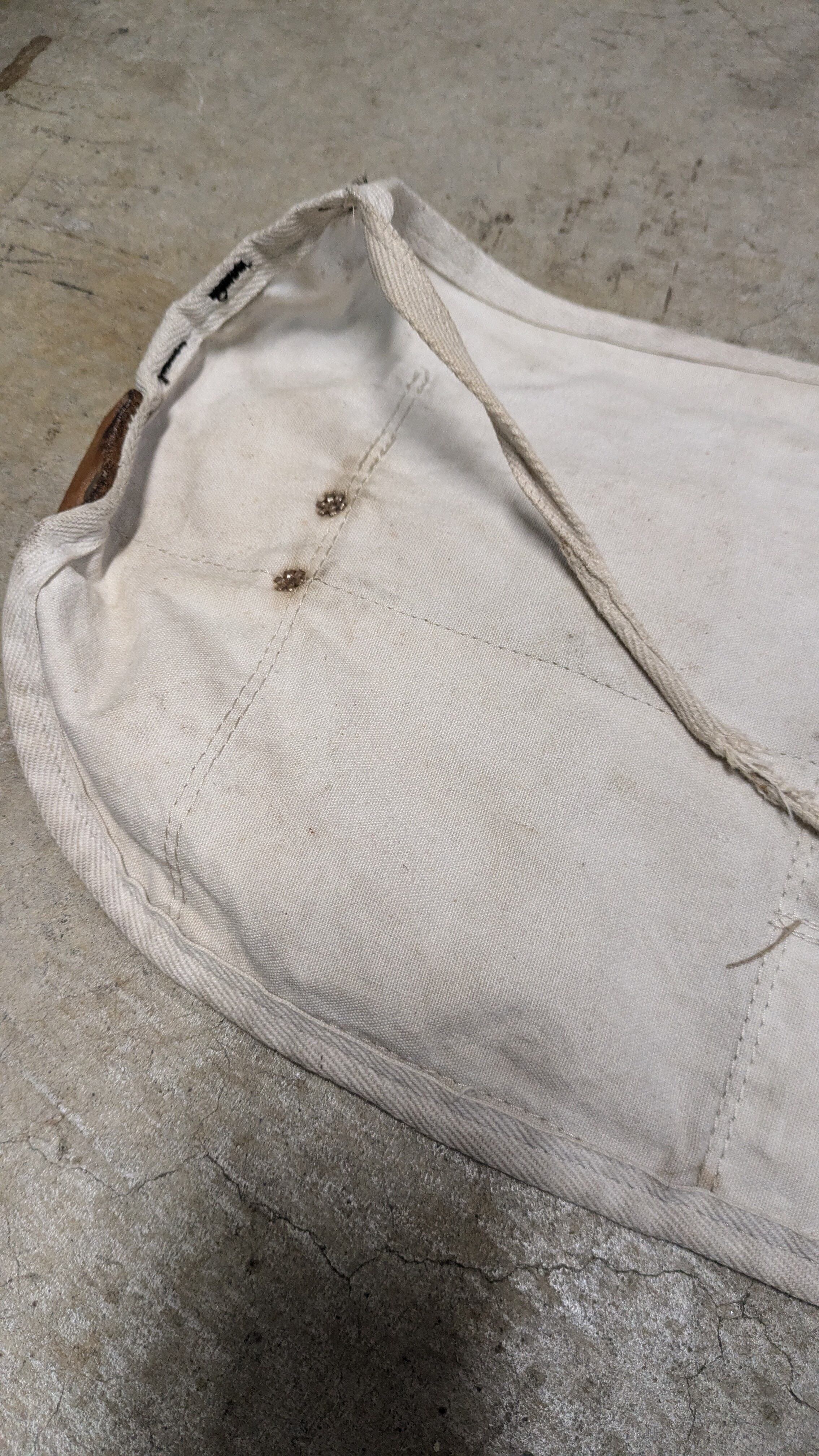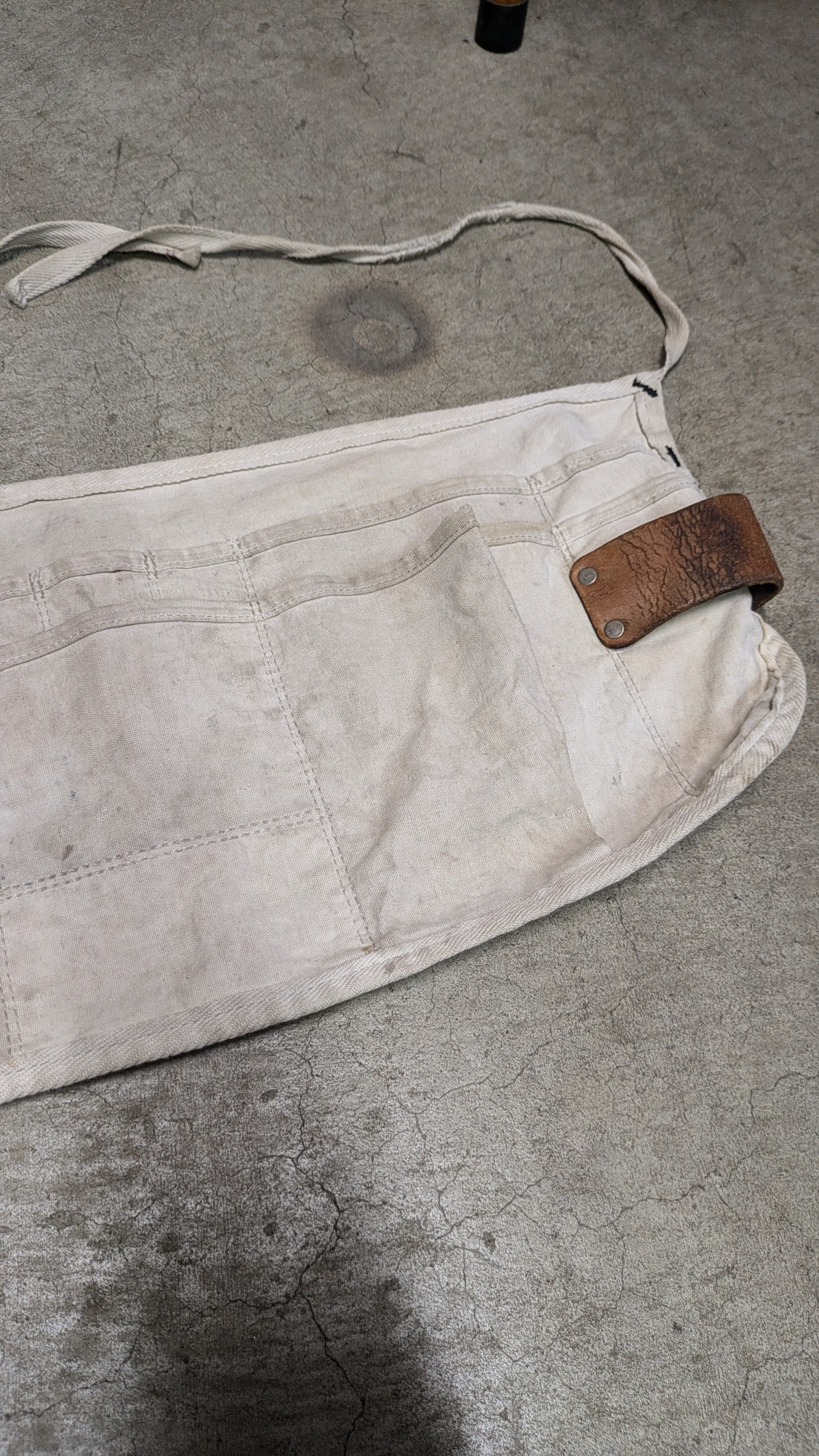 Vintage Work apron cotton USA LeatherStrap ビンテージ ワークエプロン コットンエプロン 腰巻き キャンプ 古着 リベット レザーストラップ付