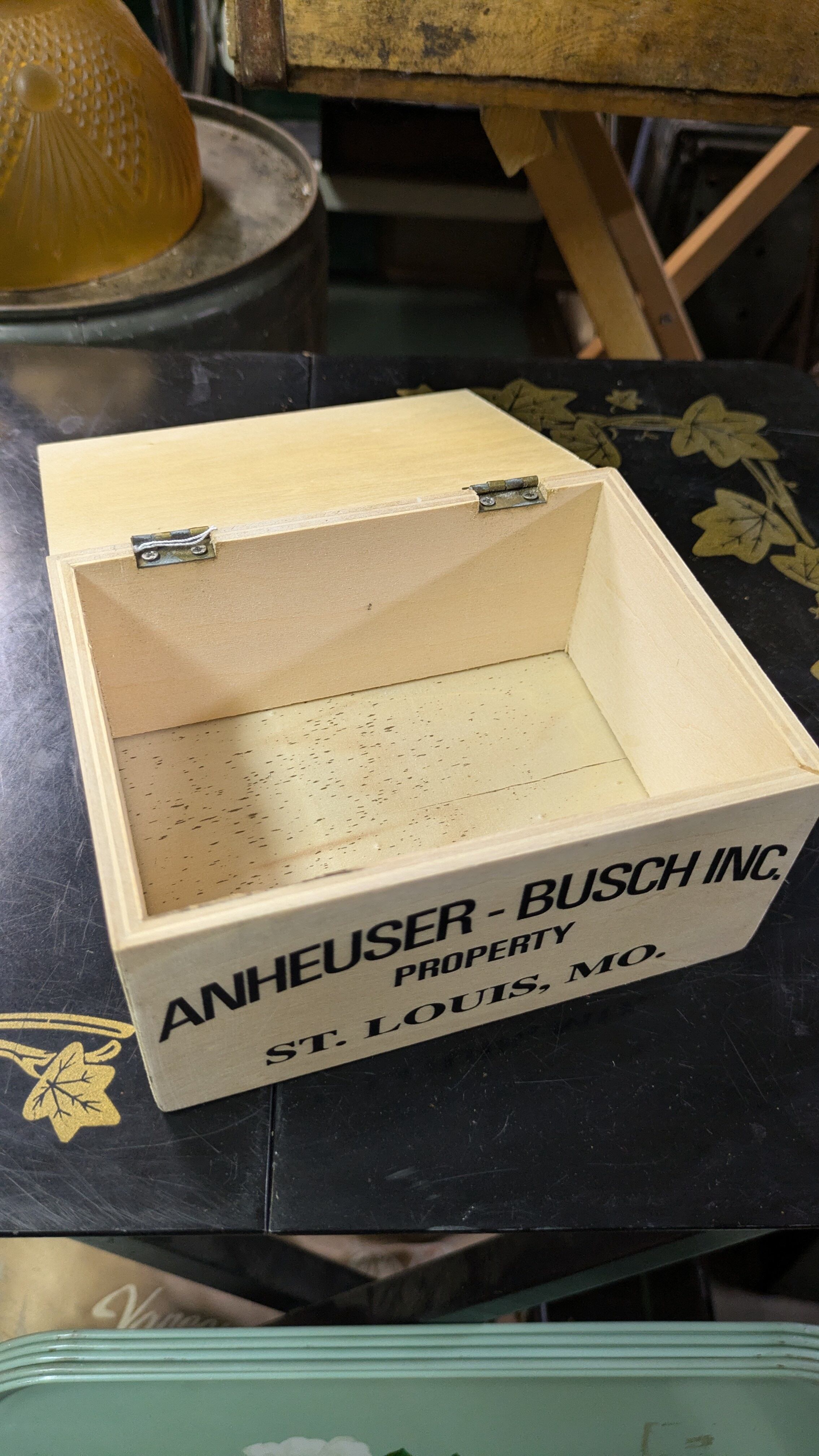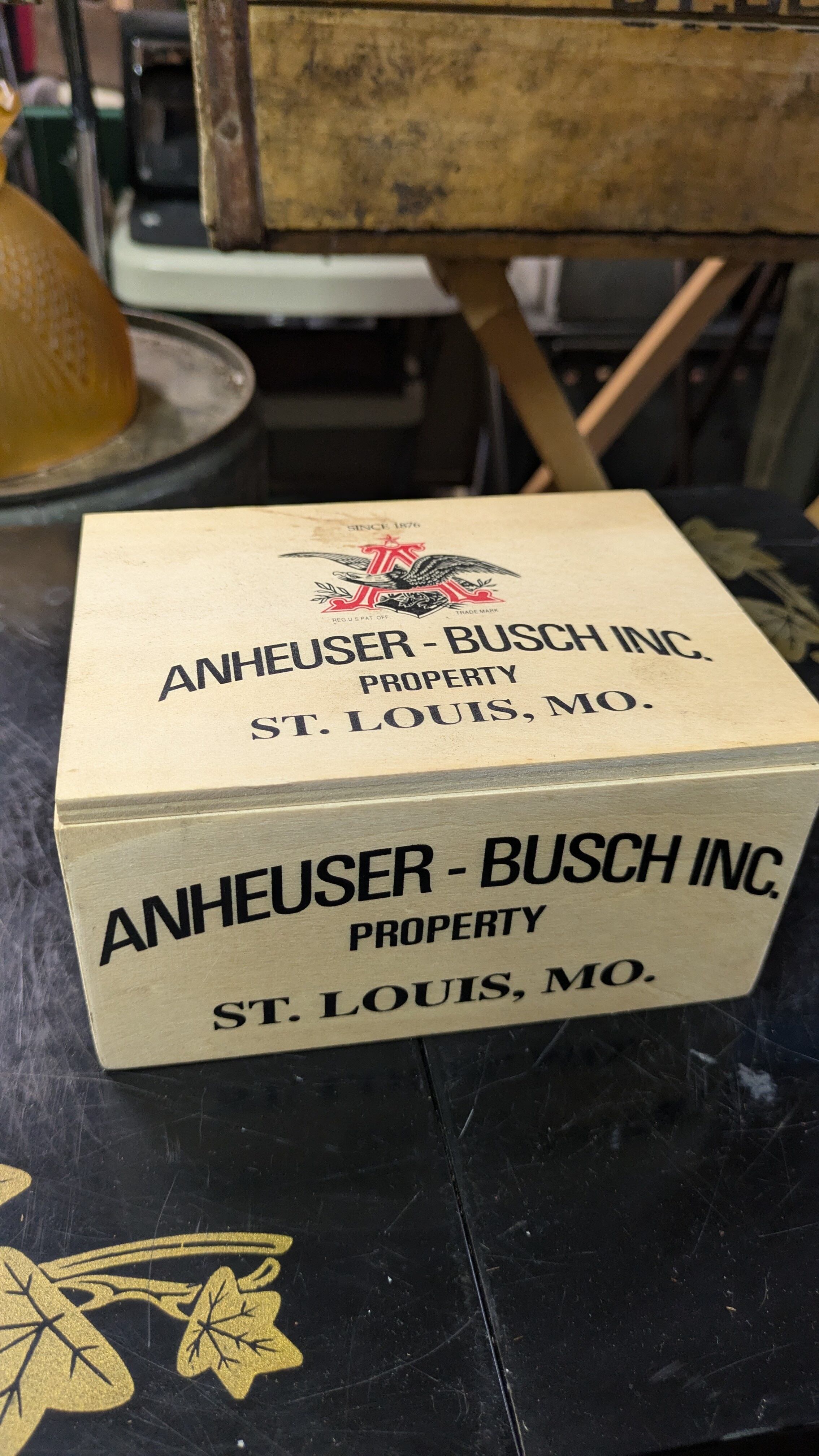 Vintage mini WoodBox ANHEUSER BUSCH INC ビンテージ ミニ ウッドボックス 木製 ミニ木箱 収納ボックス キャンプギア クレート ヴィンテージボックス 天板付き USA