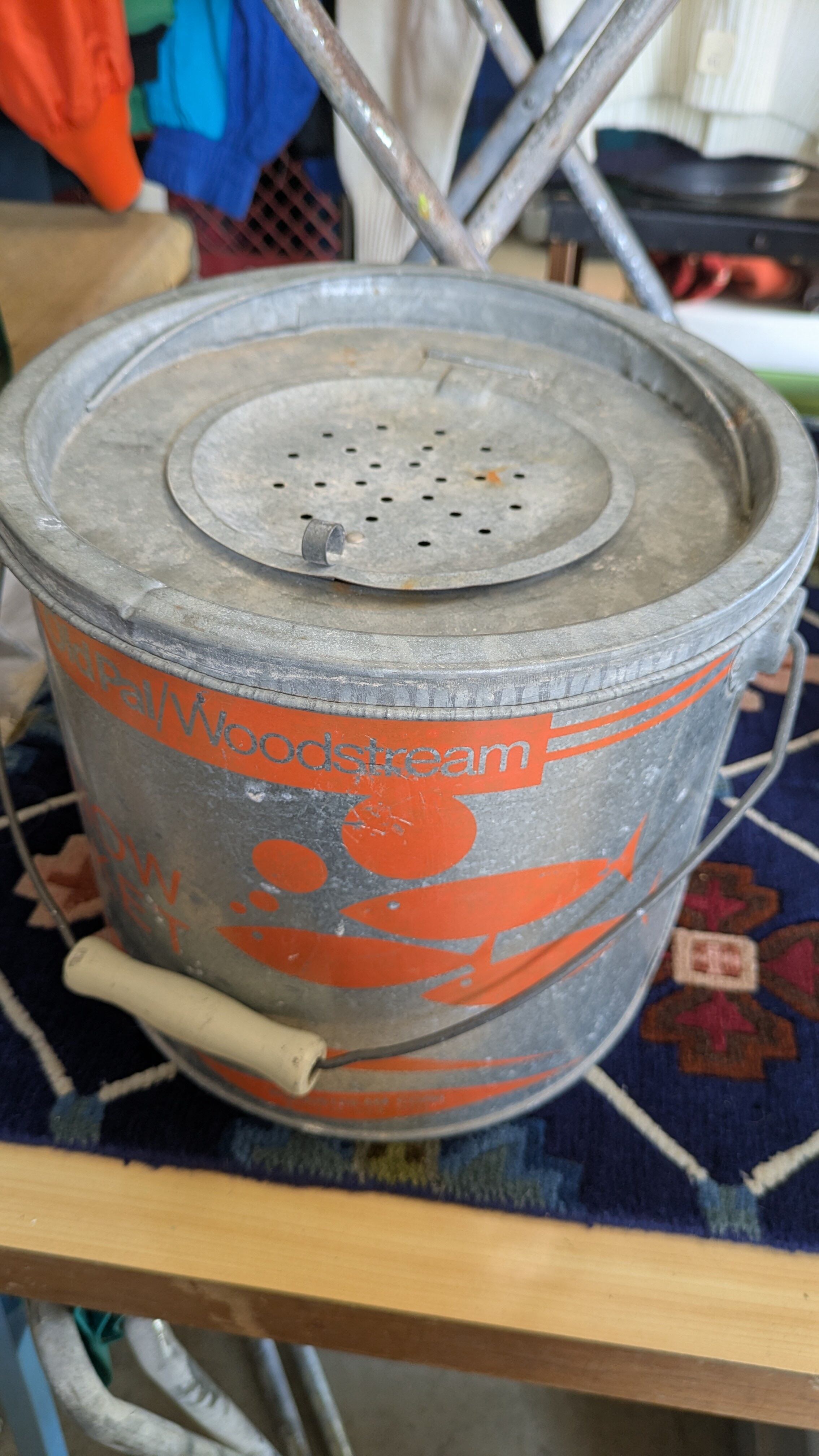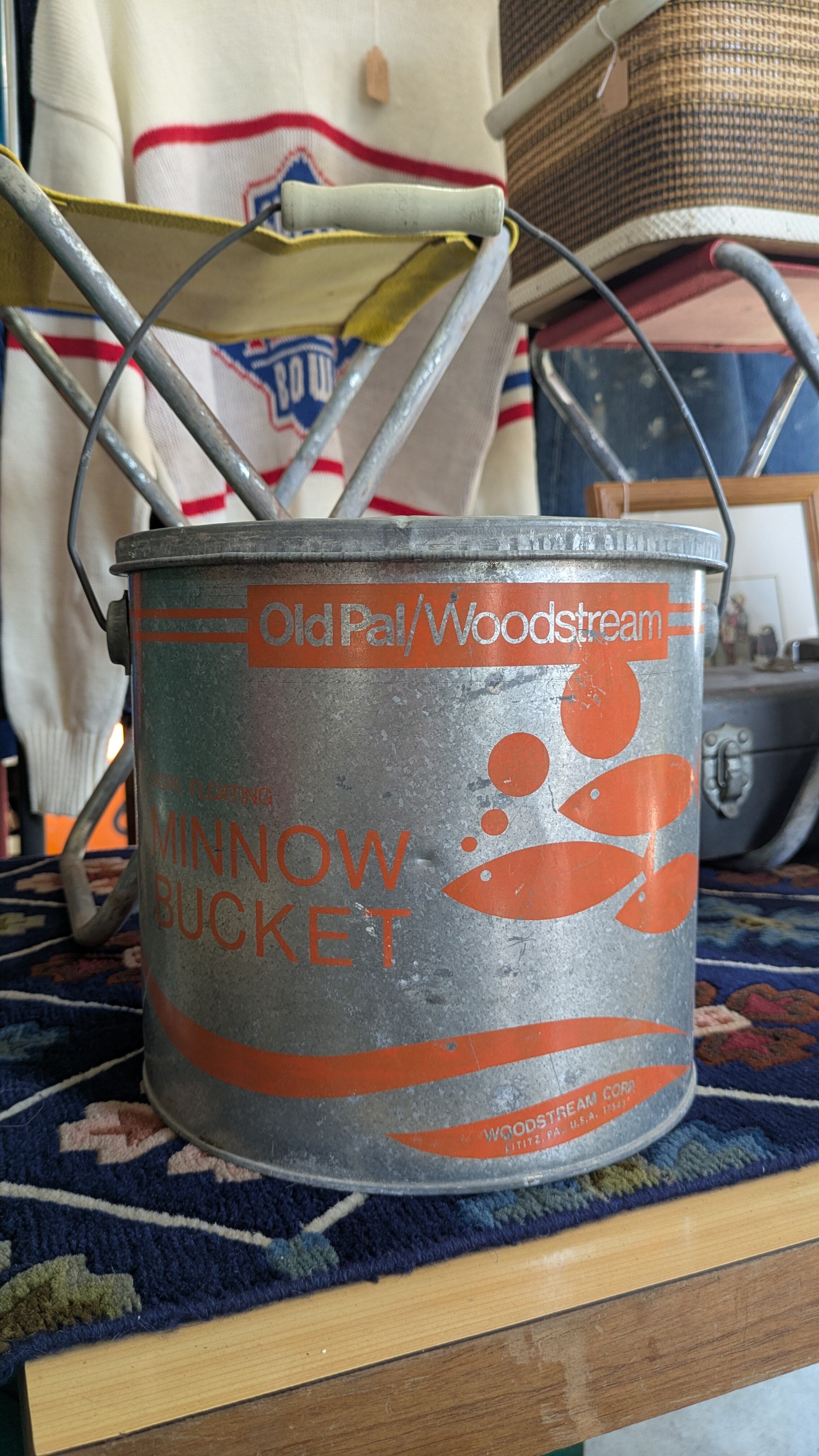 Vintage OLDPAL WoodStream Minnow Bucket Can TinCan NonFloating Fishing ビンテージ オールドパル ミノーバケツ オイル缶 薪入れ キャンプギア ブリキ缶 アンティーク