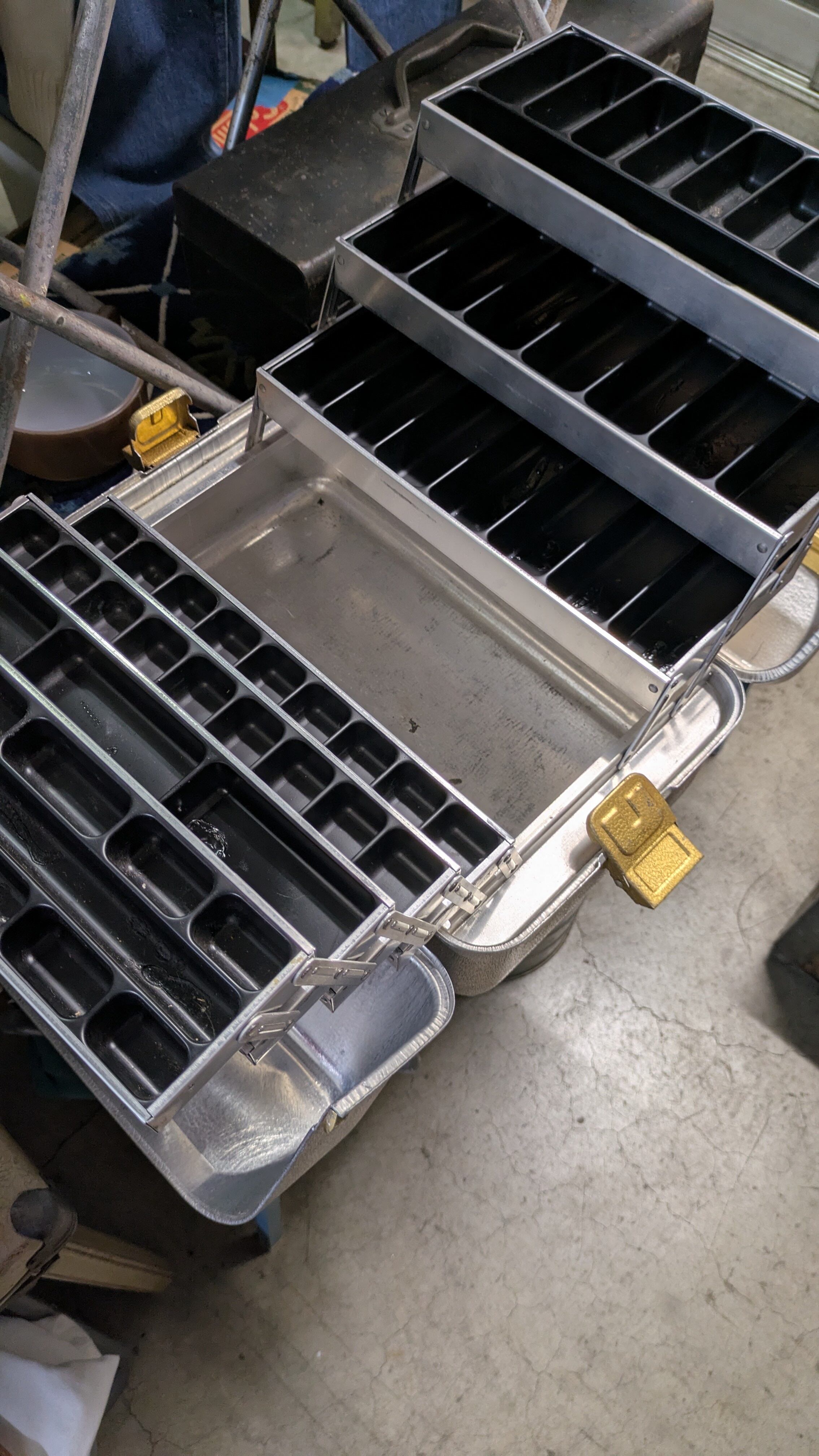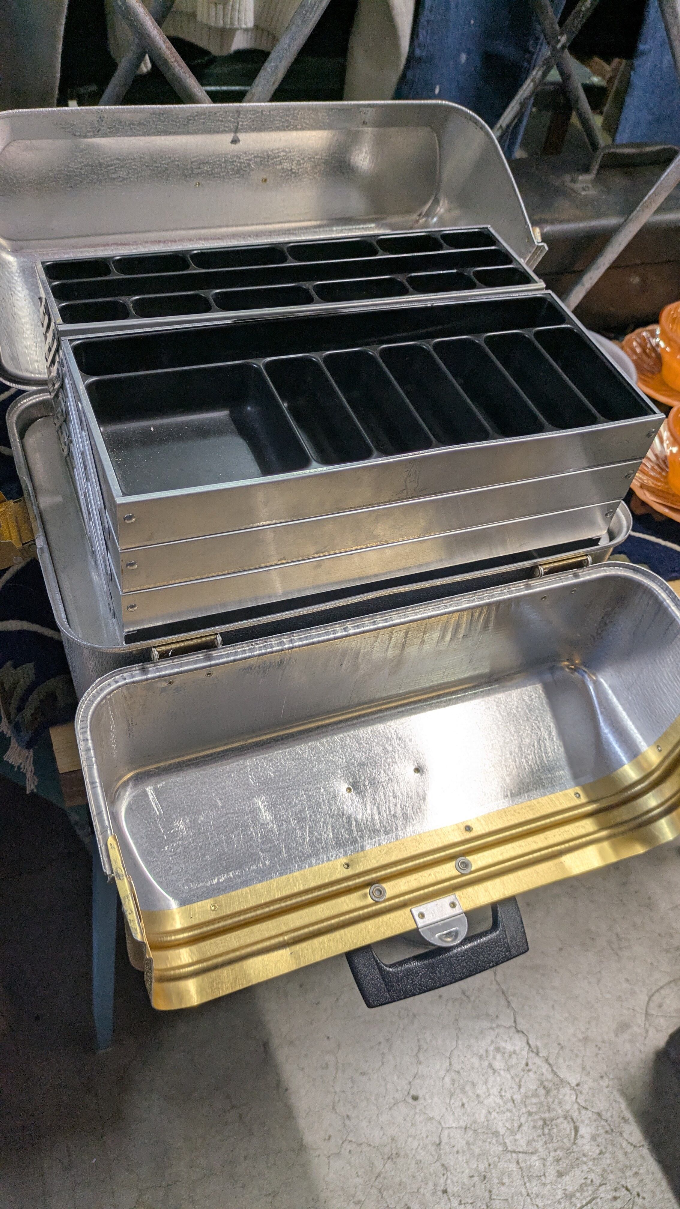 Vintage UMCO 850A TackleBox ToolBox PartsBox Fishing USA ビンテージ アムコ 850A タックルボックス アルミ製 3段 ツールボックス 道具入れ ギアボックス キャンプギア USA ヴィンテージキャンプ