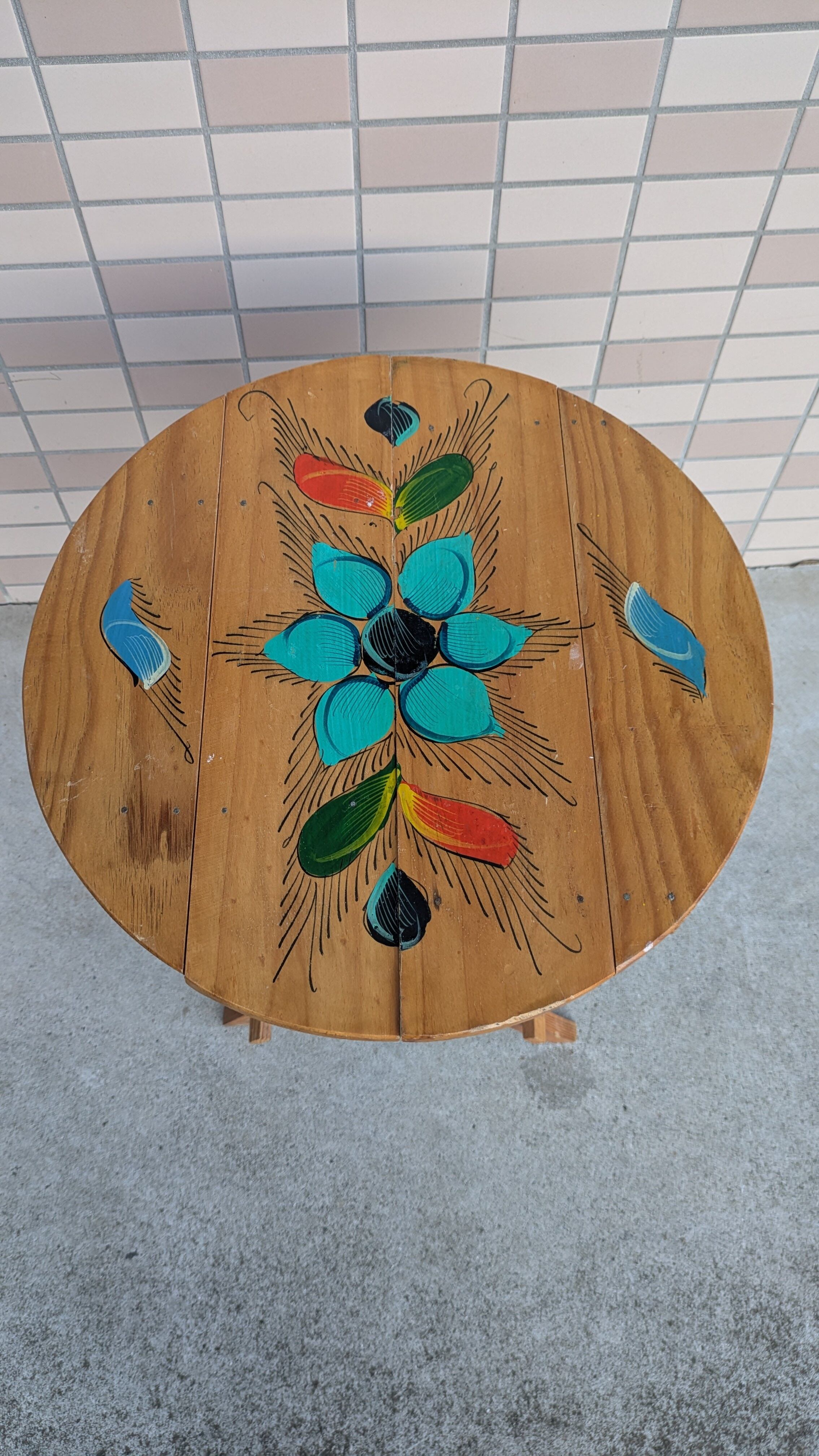 可愛らしいハンドペイントのオーバル天板と折り畳みの独特のギミックが、