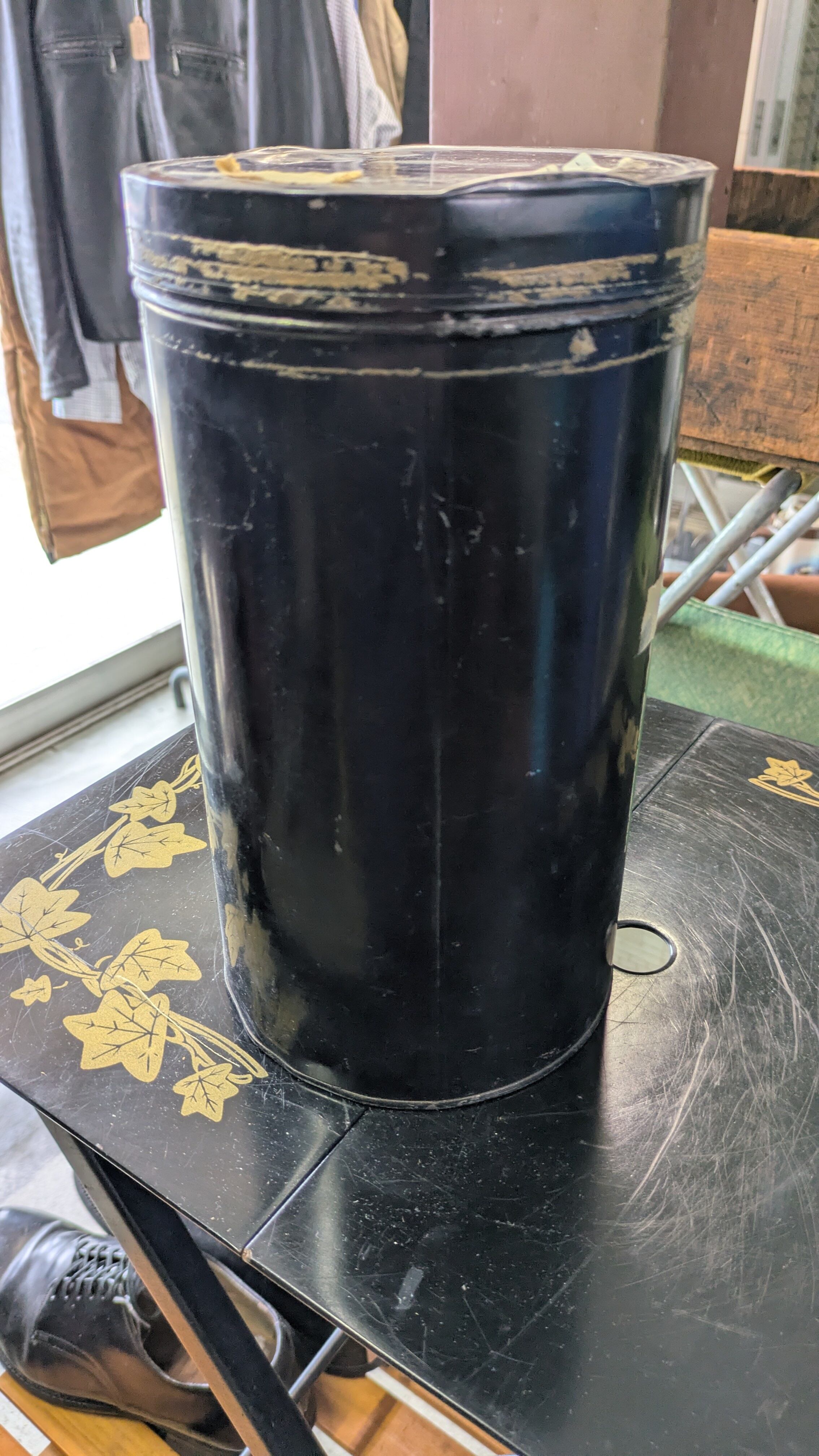 見た目の雰囲気が抜群な一品の筒状のメタル缶になります。